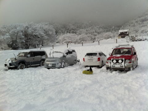 池田町総合体育館上の駐車場も、四輪駆動車で圧接して整地した。