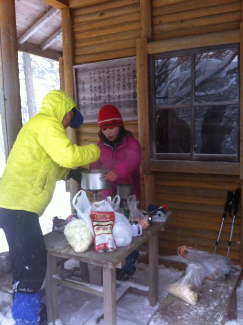 は思えない程の雪山を堪能出来た。焼石神社先の避難小屋で、もつ鍋で暖まった後、頂上