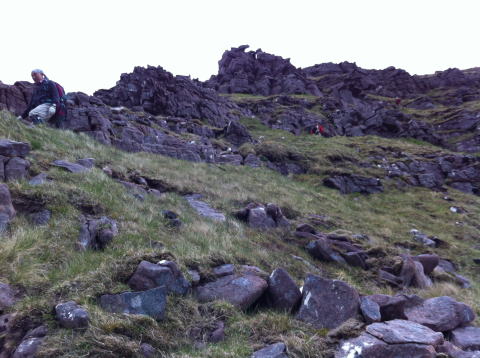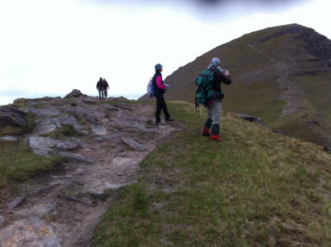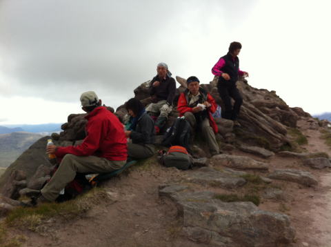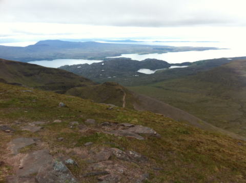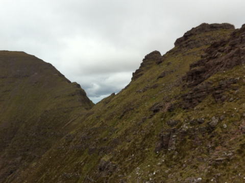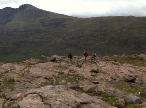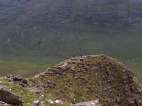 落ちた尾根のアップダウンとなり、天気が悪ければ止めた方がいい。 TomnaGruagaich頂上