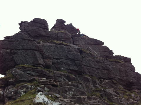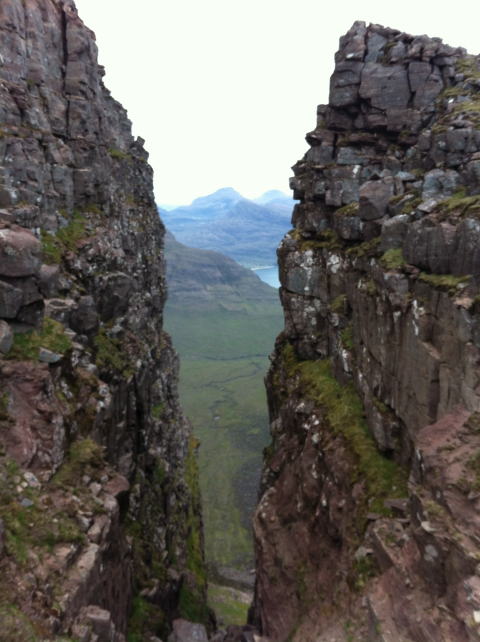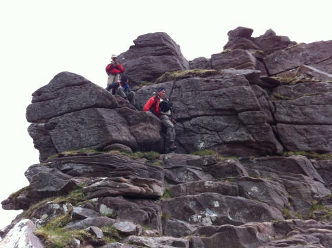 では、急登な岩壁をよじ登る。そこからSgurr Mhorまでは、日本の大キレットなみの切れ