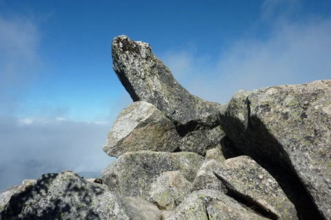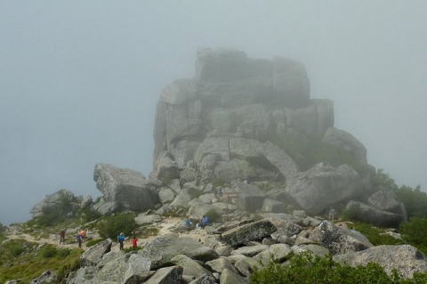 ようやく岩ゴロゴロの山頂到着。人は多かった。