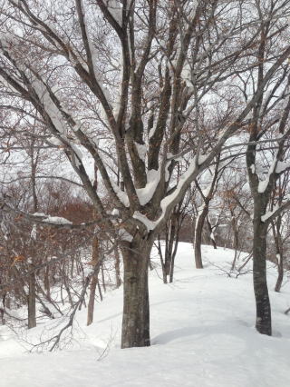 も考慮し、早めに降りた。 膝にやさしい、気持ちのいい雪であった。
