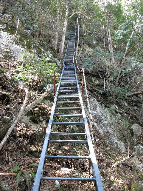 一ノ滝から仙人岩前のテラスまでほぼ垂直の梯子が、