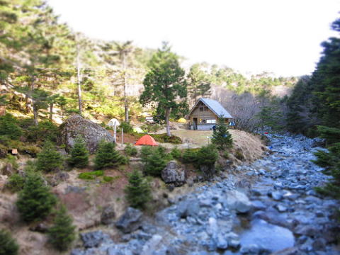 河原小屋跡付近は台風で荒らされて小屋も登山道も無くなっており、