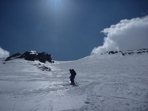従前は肩の小屋までしか行ってなかったので剣ヶ峰まで行けたことで、山頂直下の核心部を滑ることが出来たことは何よりでした。