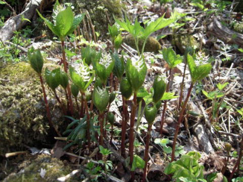 ヒトリシズカが見頃。目当ての山シャクヤクは蕾ばかりで、1つだけ開花していました。