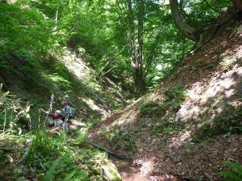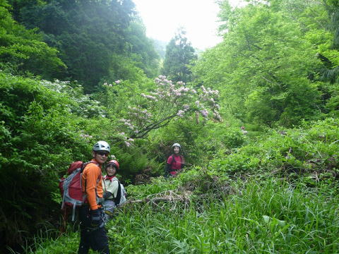 手間取り、多くの時間を費やした。2つの滝で巻くことも出来たが、市川さんが沢デビューということで懸垂下降で下る。