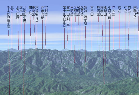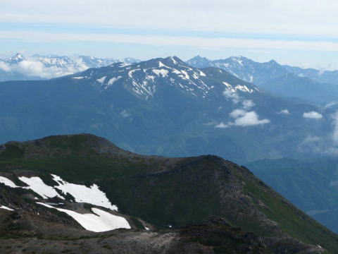 継子岳、乗鞍岳、穂高連峰と重なる山並み