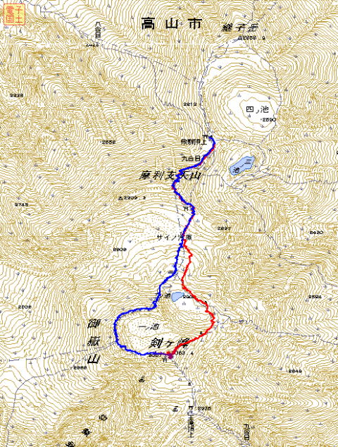 五の池小屋6:30→摩利支天山乗越7:00→二ノ池7:30→剣ヶ峰8:10〜40→→二ノ池9:40