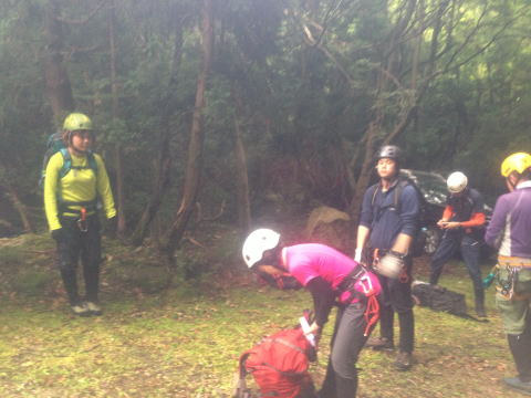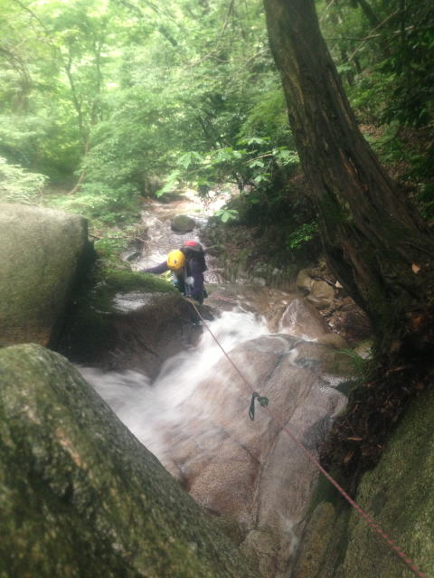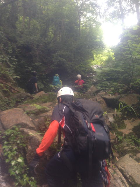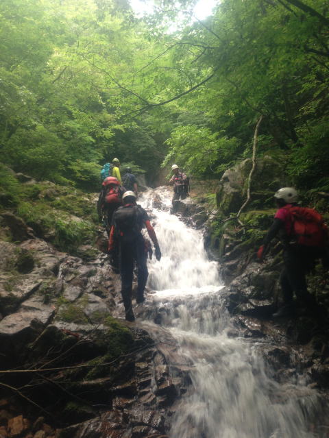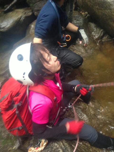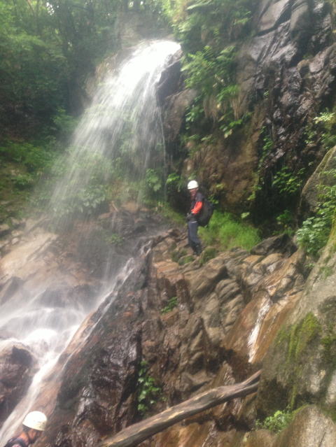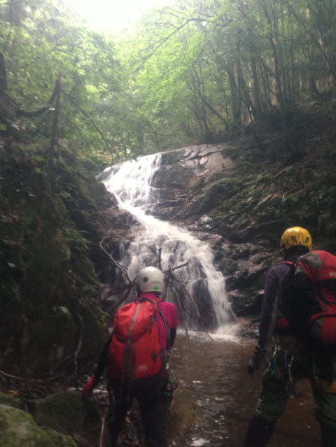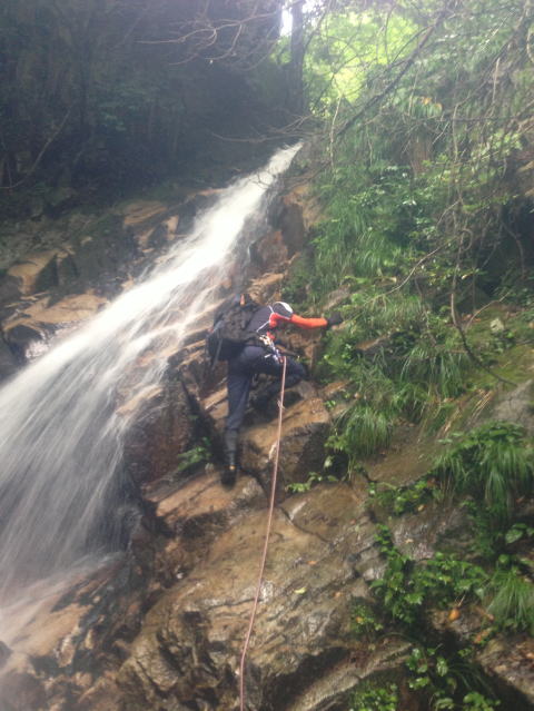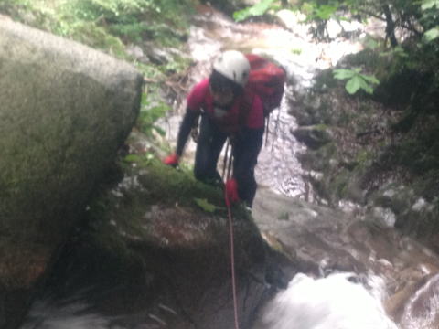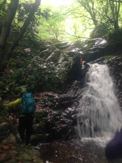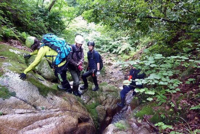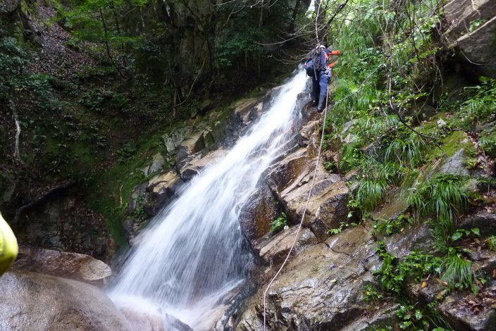 今古谷は、小滝の連続で飽きさせない。ザイルワークの実地訓練もでき、有意義な山行で