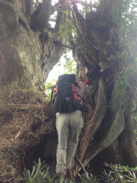 尾根上には檜の大木があった。空洞の蕪を越えて行く。