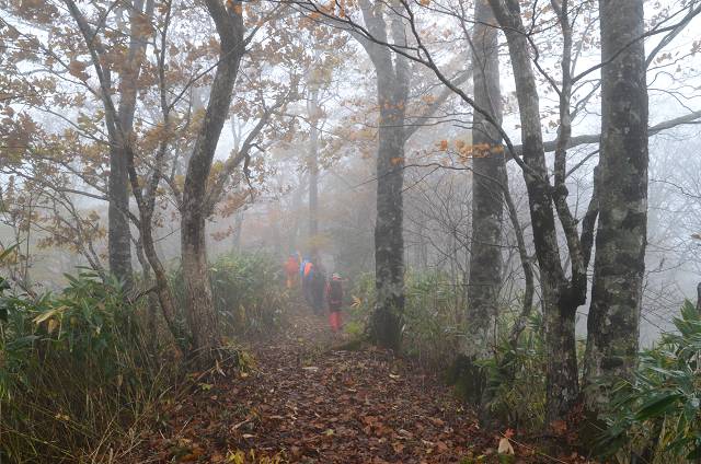 往路はガスのためほとんど視界なしです。