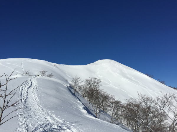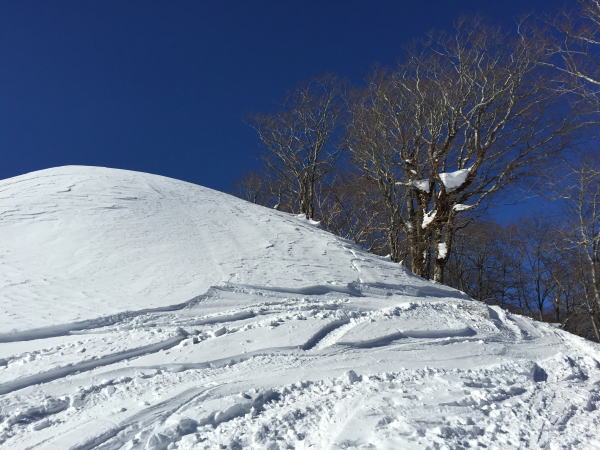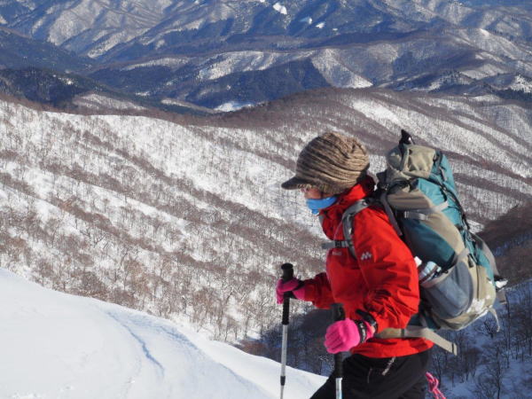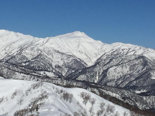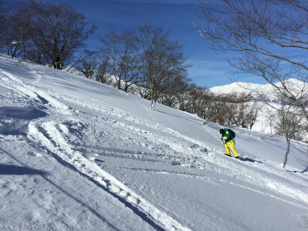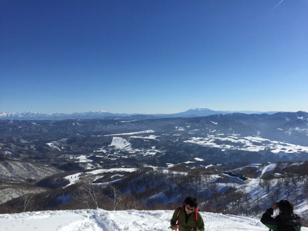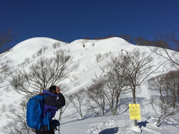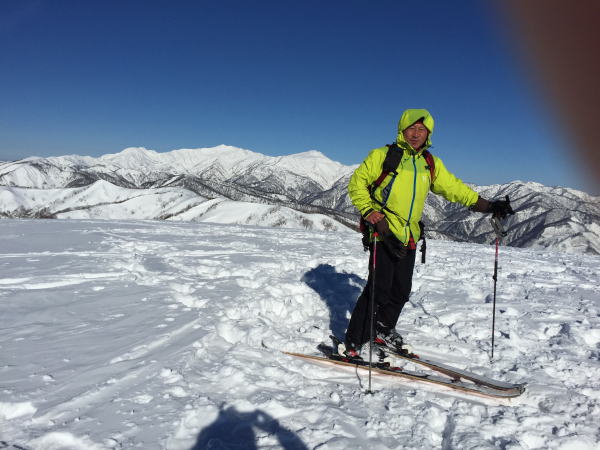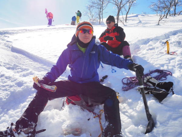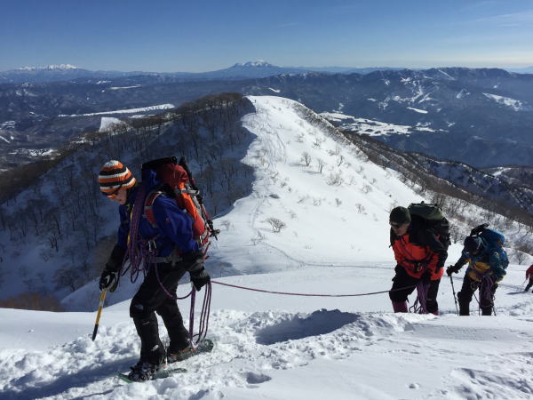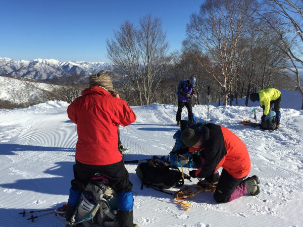 晴天のなか、高鷲スノーパークゴンドラトップから大日ヶ岳(コンティニュアス歩行及び山スキー)に登り、雪上訓練を
