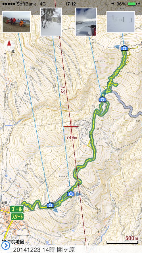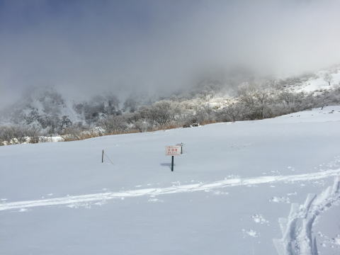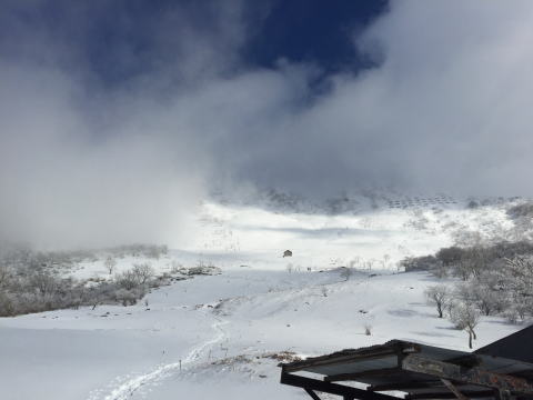 | スキー滑降-五合目小屋12:30〜13:20-1合目14:10〜P14:30 |