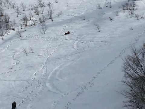 ゲレンデ下の方は、雪質が悪く、コントロールが難しかった。