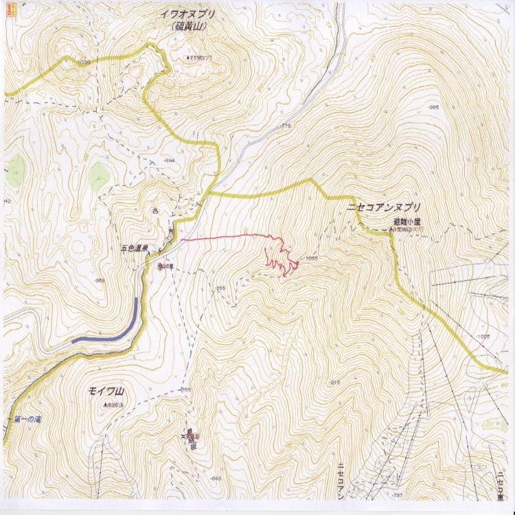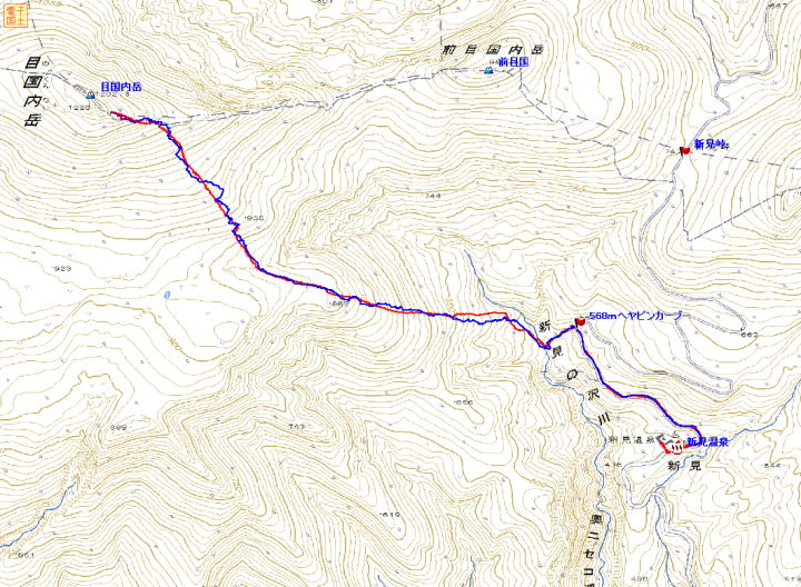 | 3/19:ペンション(8:00)−新見温泉(8:50)−568mヘアピン・渡渉点(9:20)-目国内岳1202.3m(11:30) |