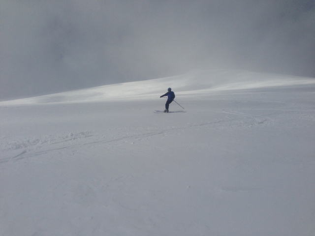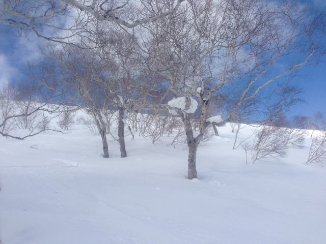 の疎林のなか、最高の斜面でした。(少しモナカぽかったですが。)