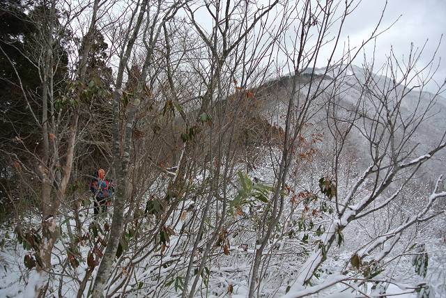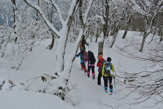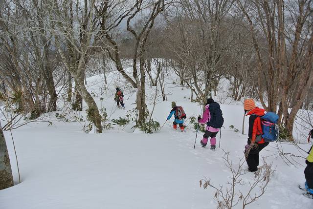 標高が上がるにつれヤブがなくなり、雪原状に。堅い雪の上に新雪が15センチほどでした。