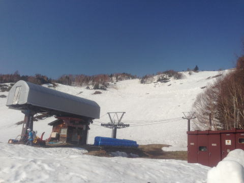 三本滝駐車場から最終リフトと駐車場の様子。 ↑↓