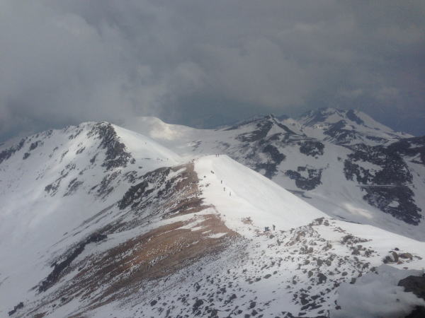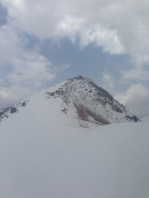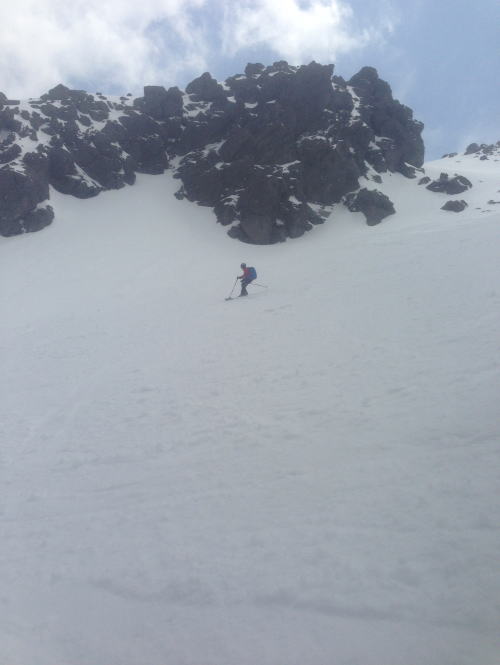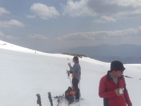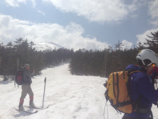 去年よりは雪も多く、雪質も良かったです。頂上直下からの大滑降は、気持ちの良い事、この