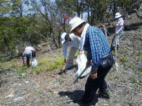 養老山の一等三角点の山頂から、小倉山周辺、笹原峠まで続く登山道を中心に、養老公園にかけて清掃活動を行いました。