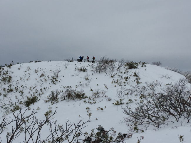 頂上が見えてきました。雪が少ないです。