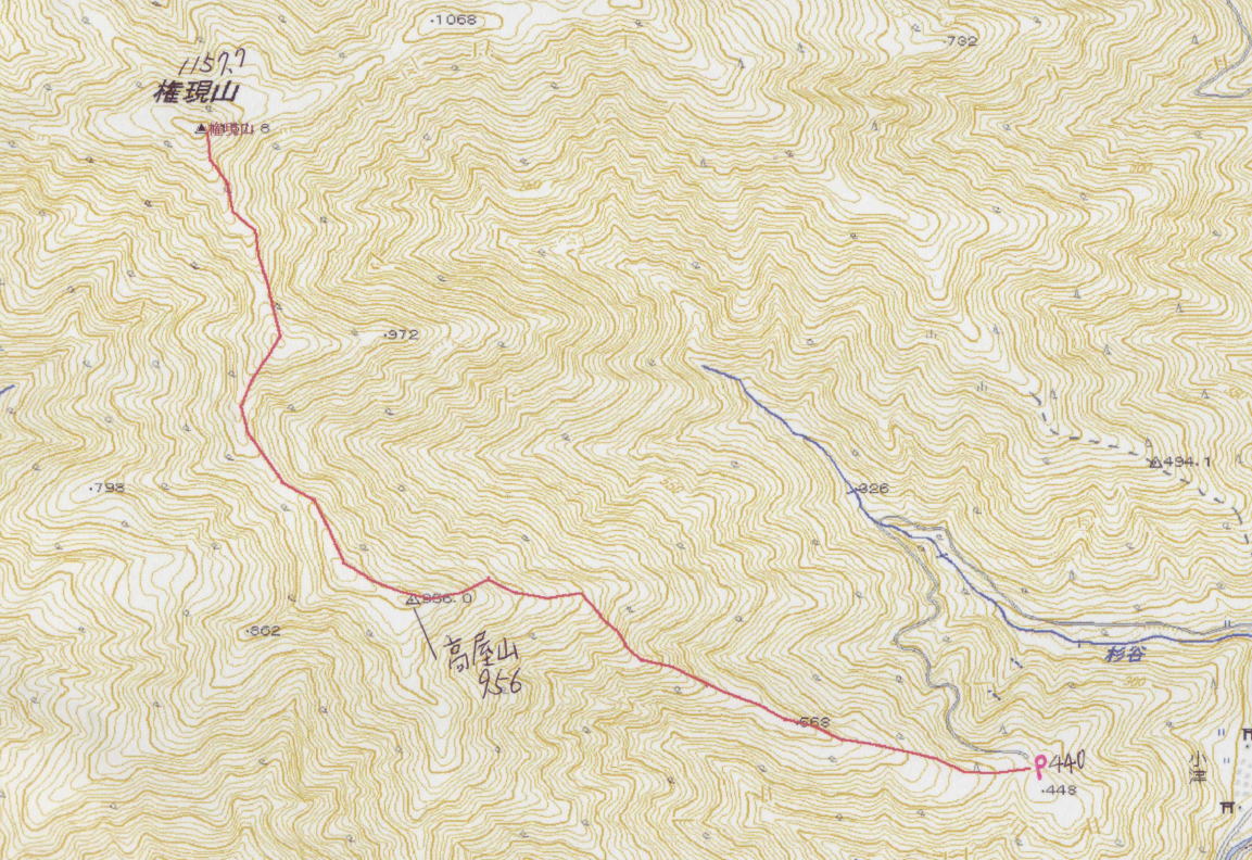 | 自宅9:00→杉谷林道登山口9:50→高屋山10:50→前衛峰11:20→小津権現山11:35〜11:50 |