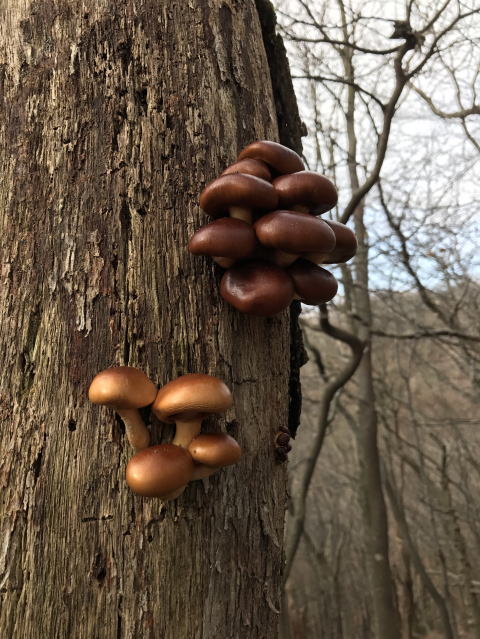 ↑↓ 植林された若芽を鹿から防ぐための鹿除けネットの際に、骨が落ちていました。