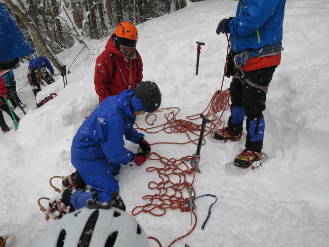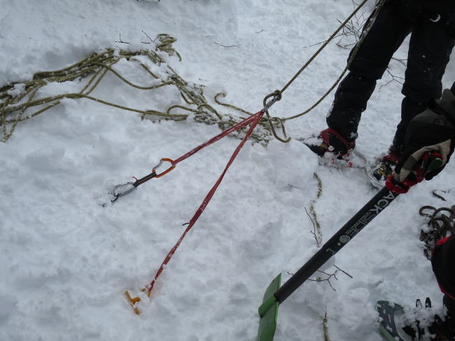 ・引上げ引下げ・引上げのザイルのセッティング及びアンカー工作と検証