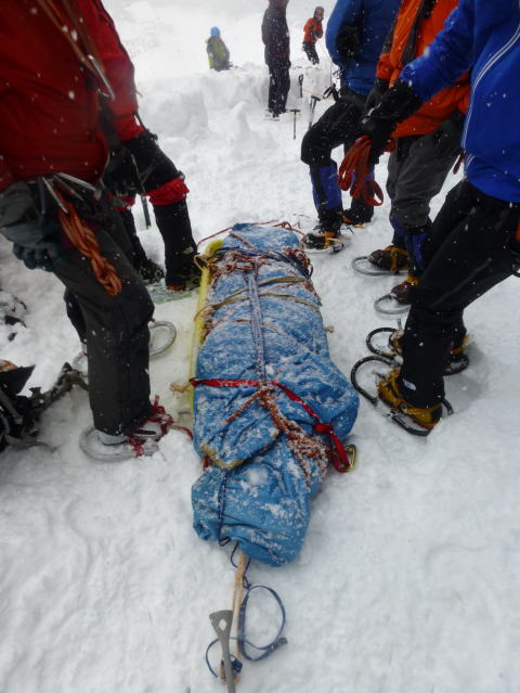 ・負傷者の梱包(ツエルト担架・ザイル担架)