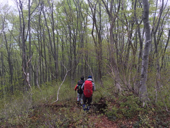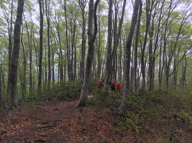 五銚子の滝を越す辺りが急登ですが、頂上から東尾根にかけてはブナの二次林の新緑が綺麗でした。