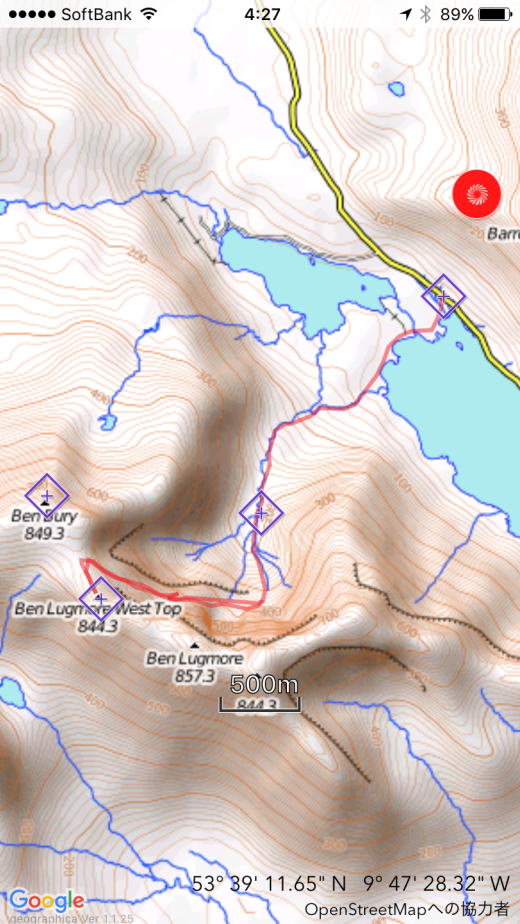 予定でしたが、Ben Lugmore West Topの頂で止めました。標高も、ミューリア山とそん色もなく、疲れも溜まって