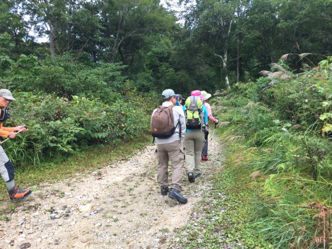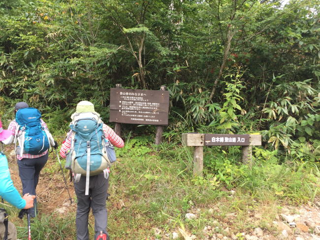 参加者全員が初めての山ということで、白木峰に行ってきました。 登山口は、富山県万波高原。そこの至るまでの林道、多少道が