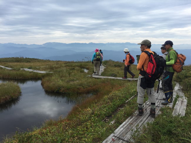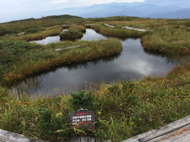 白木峰の三角点を越えて、浮き島までの間が木道で池塘ありで感じが良いところ。シーズンはお花を求めて人多しです。
