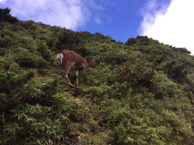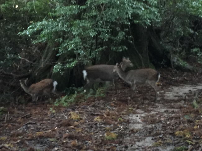 ↑↓ さっそくシカの出迎えを受ける。