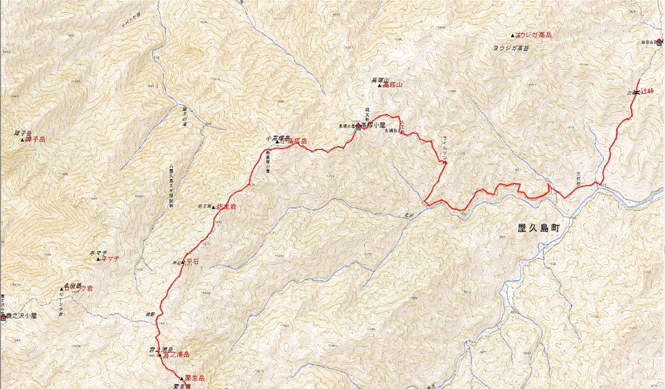 | 9/25(日):新高塚小屋(5:45)−分岐(10:15)−辻峠(11:35)-白谷雲水峡(13:15,14:40)−バス−宮之浦港(15:15) |