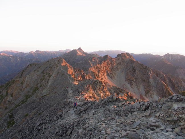 10/1 穂高岳山荘(05:00)・・・奥穂高岳(05:50)・・・ジャンダルム(07:10)・・・天狗のコル(08:05)・・・西穂高岳(11:00)西穂独標(12:30)・・・