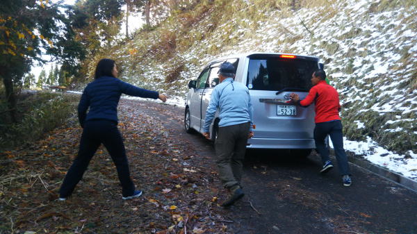 ノーマルタイヤが滑り小屋までちょっと人力が必要でした。