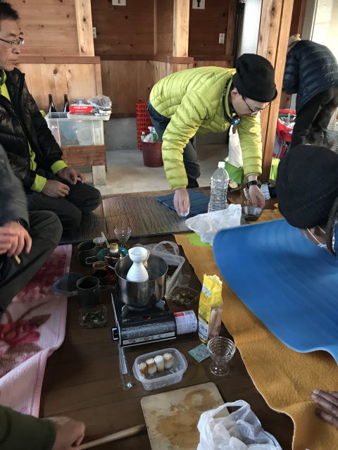 恒例の忘年会山行(前夜祭含む)が旧貝月ゲレンデ第二リフトトップ 小屋で開催されました。