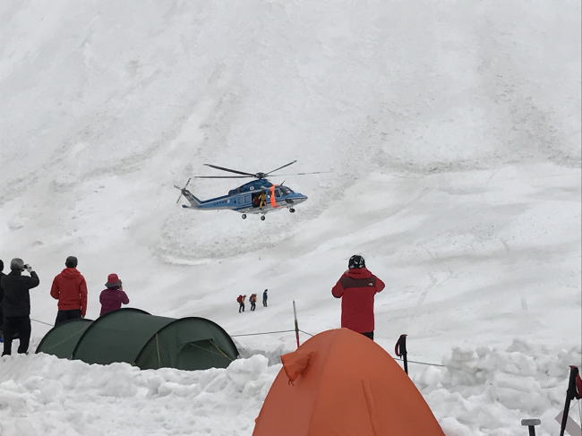 ↑↓ この期間、穂高周辺は事故が多発。怪我をした人をヘリでピックアップ。