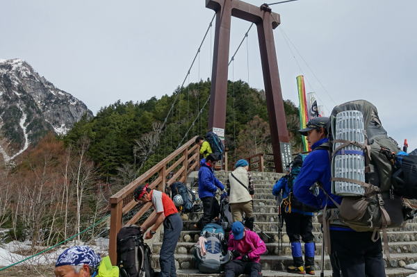 (5/3)上高地タクシー乗降口6:30-徳澤7:32〜7:45-横尾8:41〜8:53-本谷橋10:15-涸沢テン場12:18