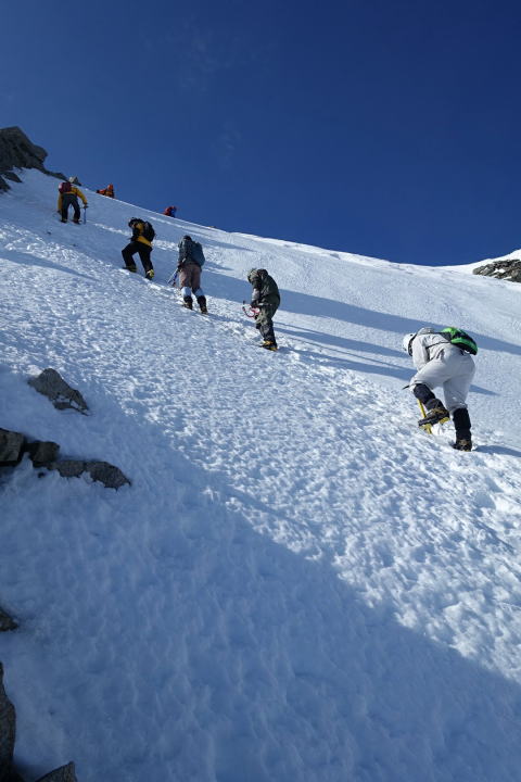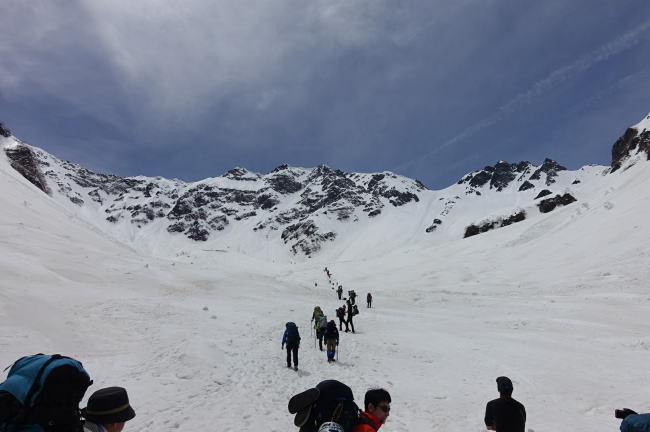 死亡事故を含む遭難が多発。我々は早出早帰りを心掛け、雪の安定した時間に核心部を抜けるよう