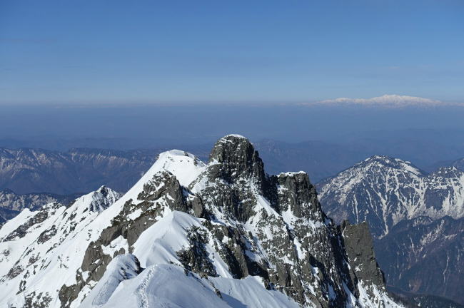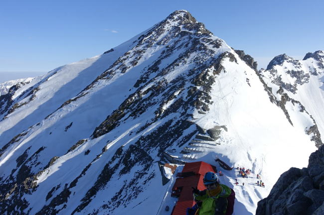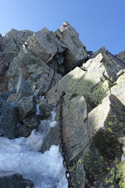 ↑ 下りは慎重に、アイゼン、ピッケルを効かせて降りた。