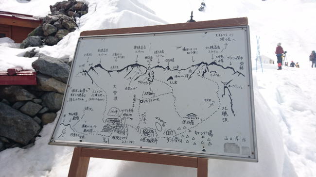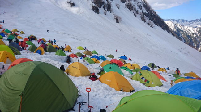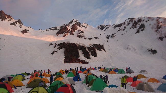 に行動した。 初日に早くテント場に到着し、テント設営後、ザイルワークを復習した。