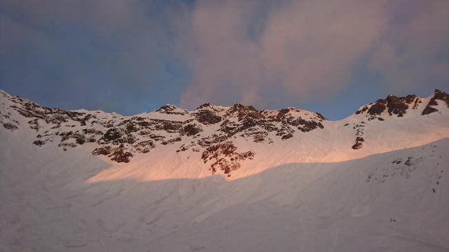参加者の1名が、ザイテングラード下降中、緩んだ雪で足を滑らせて数メートル滑ったが、そこの