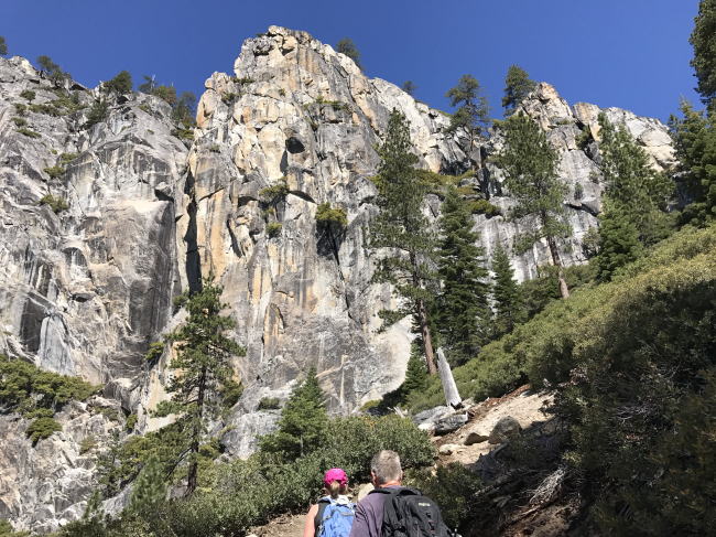 ヨセミテ・フォールが登るにしたがって大きく見えてくる。 ↑↓