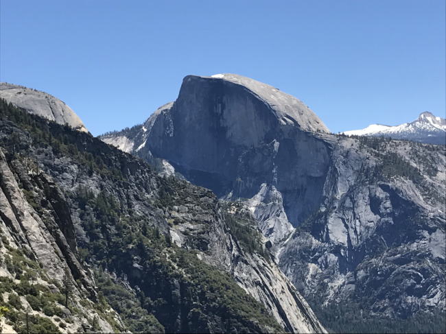 ↑ 明日登るハーフドーム。頂上付近にはまだ雪が残っている。