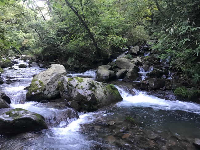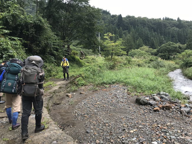 軽トラック(四駆)で黒谷の降り口(ホハレ峠から先、お地蔵さん)に乗り付けた。門入まで2時間。そこから入谷
