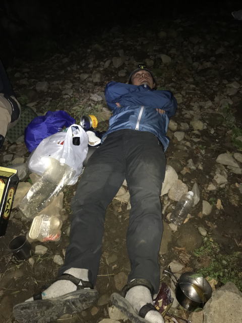 以下、テン場にて。8時間の宴会、ご苦労様でした。