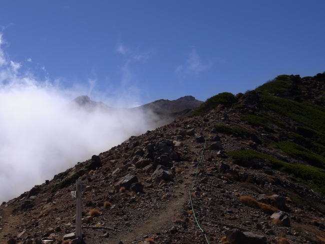 コースタイム;小坂口登山口(07:20)−のぞき岩避難小屋(08:56)−八合目(09:23)−五の池小屋(10:40)−二ノ池本館(11:33)−黒十字峡(11:41)